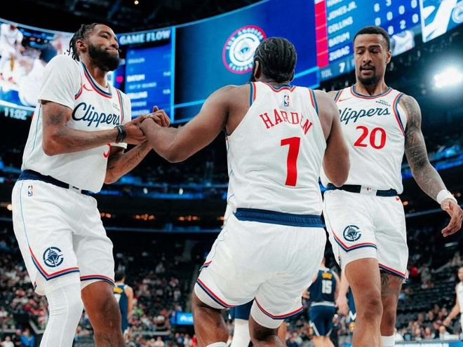 从快船常规赛核心哈登说起。哈登休赛期年满36岁的情况下,新赛季开打后,他是快船表现最好的球员,没有之一。除了揭幕战只拿到15分之外,之后5场比赛连续得分20+,场均贡献23分5篮板9助攻,两项命中率是48%+39%。只用一个数据就能体现哈登的价值,本赛季哈登在场时,快船百回合赢对手3.2分;当他不在场时,快船百回合输对手12分,On-Off值是+15.2。这支快船到底有多糟糕?哈登本赛季年薪3920万,只拿了一份工资,却要干三份活。第一,得分。快船赛季首胜,哈登轰30+7+7,带领替补一波流打花对面,哈登正负值+22。